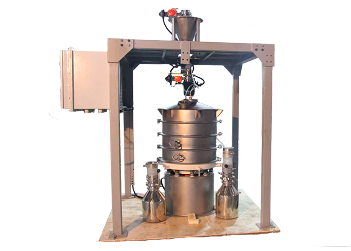 3D打印材料氣體超聲波振動(dòng)篩配有氣體保護(hù)裝置,與材料接觸部分采用304材質(zhì),采用立式振動(dòng)電機(jī)作為激振源。垂直和傾斜的三維運(yùn)動(dòng),然后將此運(yùn)動(dòng)傳遞到篩面上,大于篩孔尺寸的物料留在篩面上并從粗料排料口排出,小于篩孔尺寸的物料 落入下層。,根據(jù)振動(dòng)篩的設(shè)計(jì),可以配置1-5層篩網(wǎng)來實(shí)現(xiàn)粒度分級(jí)。