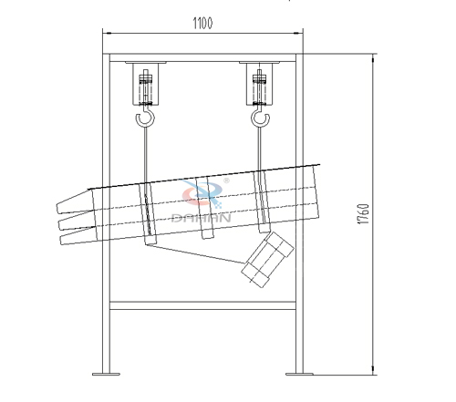 吊掛式直線振動篩分機(jī)為雙振動電機(jī)驅(qū)動。當(dāng)兩臺振動電機(jī)做同步、反向旋轉(zhuǎn)時,其偏心塊所產(chǎn)生的激振力在平行于電機(jī)軸線的方向相互抵消,在垂直于電機(jī)軸的方向疊為一合力,因此篩機(jī)的運(yùn)動軌跡為一直線。兩電機(jī)軸相對篩面在垂直方向有一傾角,在激振力和物料自重力的合力作用下,物料在篩面上被拋起跳躍或向前作直線運(yùn)動,從而達(dá)到對物料進(jìn)行篩選和分級的目的。