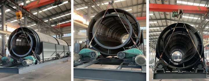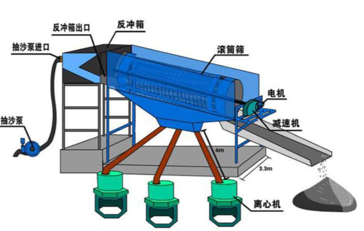 由鏟車上料,通過料斗上安裝的小振動(dòng)器振動(dòng)把料漏進(jìn)滾筒篩沙機(jī),物料進(jìn)入滾筒后,通過網(wǎng)孔進(jìn)行物料的分離,成品料會(huì)漏下來,經(jīng)過皮帶機(jī)傳送出來,廢料從滾筒尾部漏出。