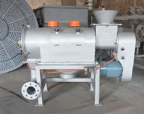 臥式氣流篩也叫氣旋篩,置于機體內,物料通過螺旋輸送系統后,和氣流混合、霧化進入網筒內;通過網筒內風輪葉片使物料同時受離心力和旋風推進力,從而近使物料噴射過網,由細料排出口排出,不能過網的物料沿網筒壁從粗料排出口排出。